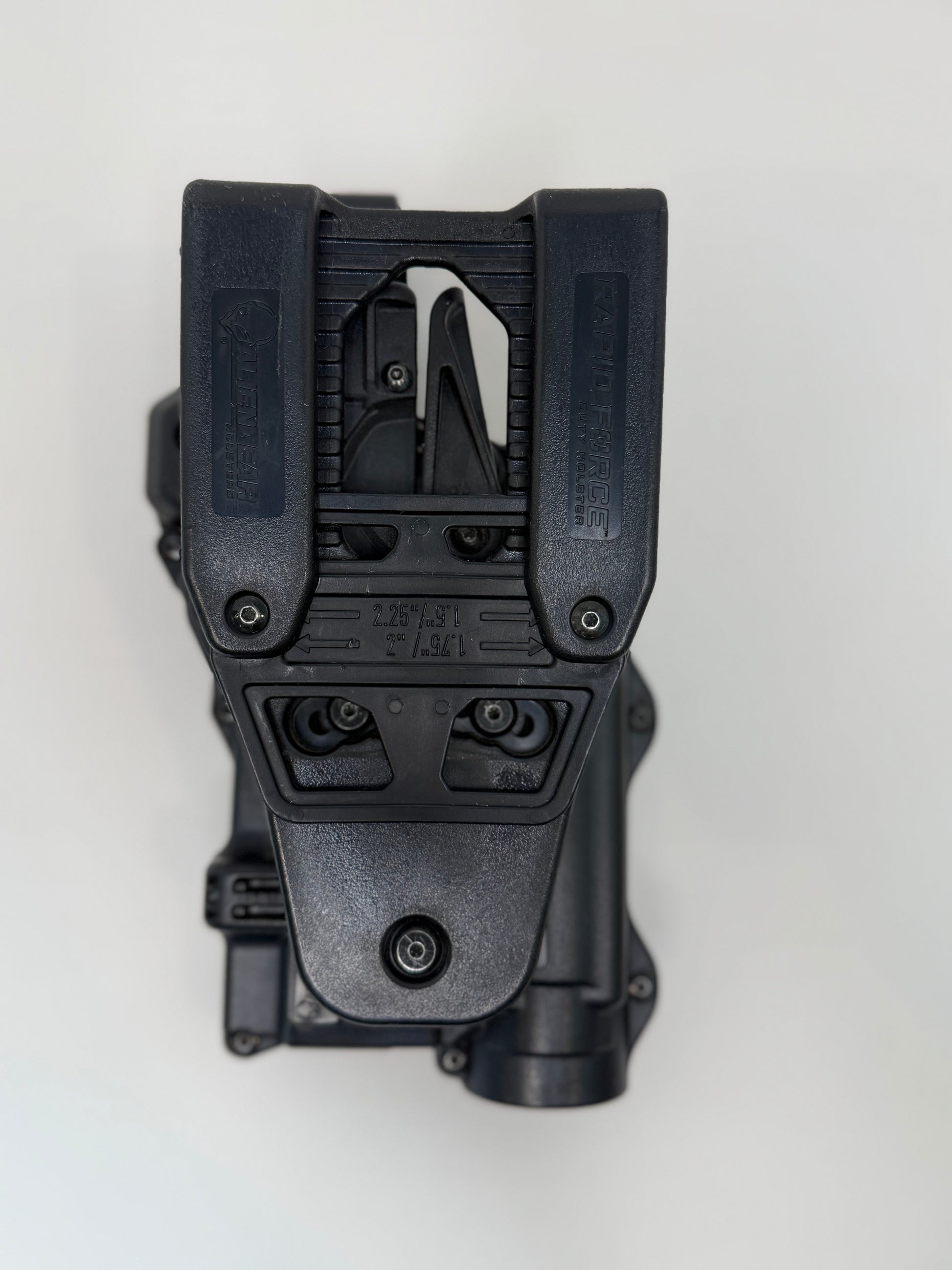 The Rapid Force Level III Duty Holster for Sig Sauer with large light is the new standard in duty carry for law enforcement, military, and security professionals. The Level 3 Duty Holster is the quickest, most secure and durable holster on the market – all while achieving the highest level of retention. Top rated features include maximum trigger protection and a light pocket large enough to accommodate most full-size duty lights. The large MRDS hood is removable, yet includes full coverage for most optics. It is renowned for its quick, intuitive draw, durability, and versatility utilizing our Quick Disconnect System.
